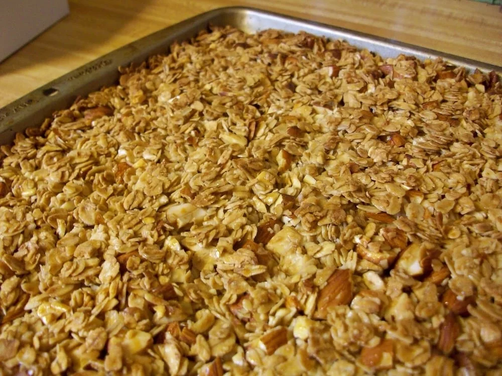 3. Whisk together the honey, vanilla, and salt in a large bowl. Whisk in oil. Fold in oats and almonds until thoroughly coated.