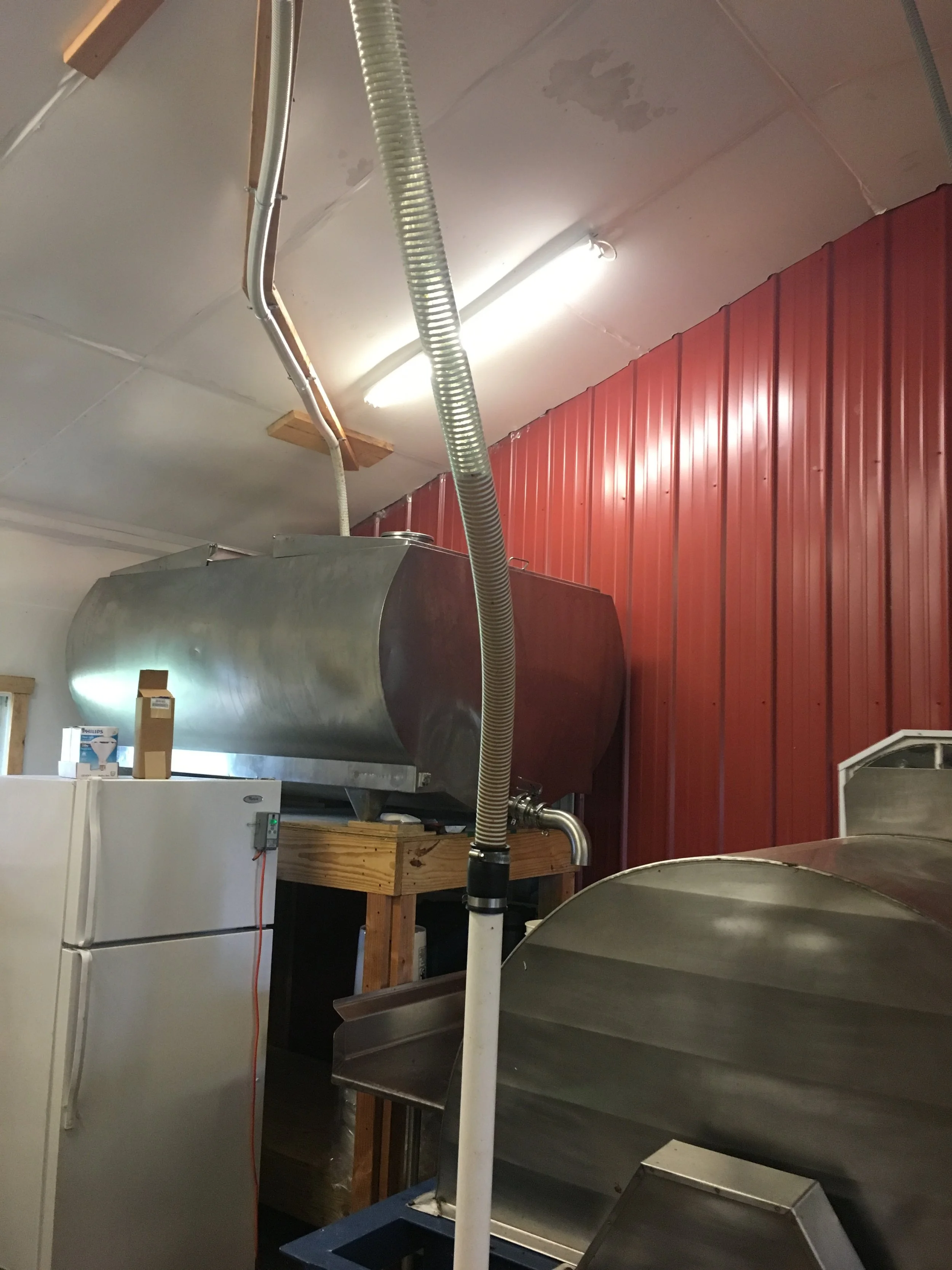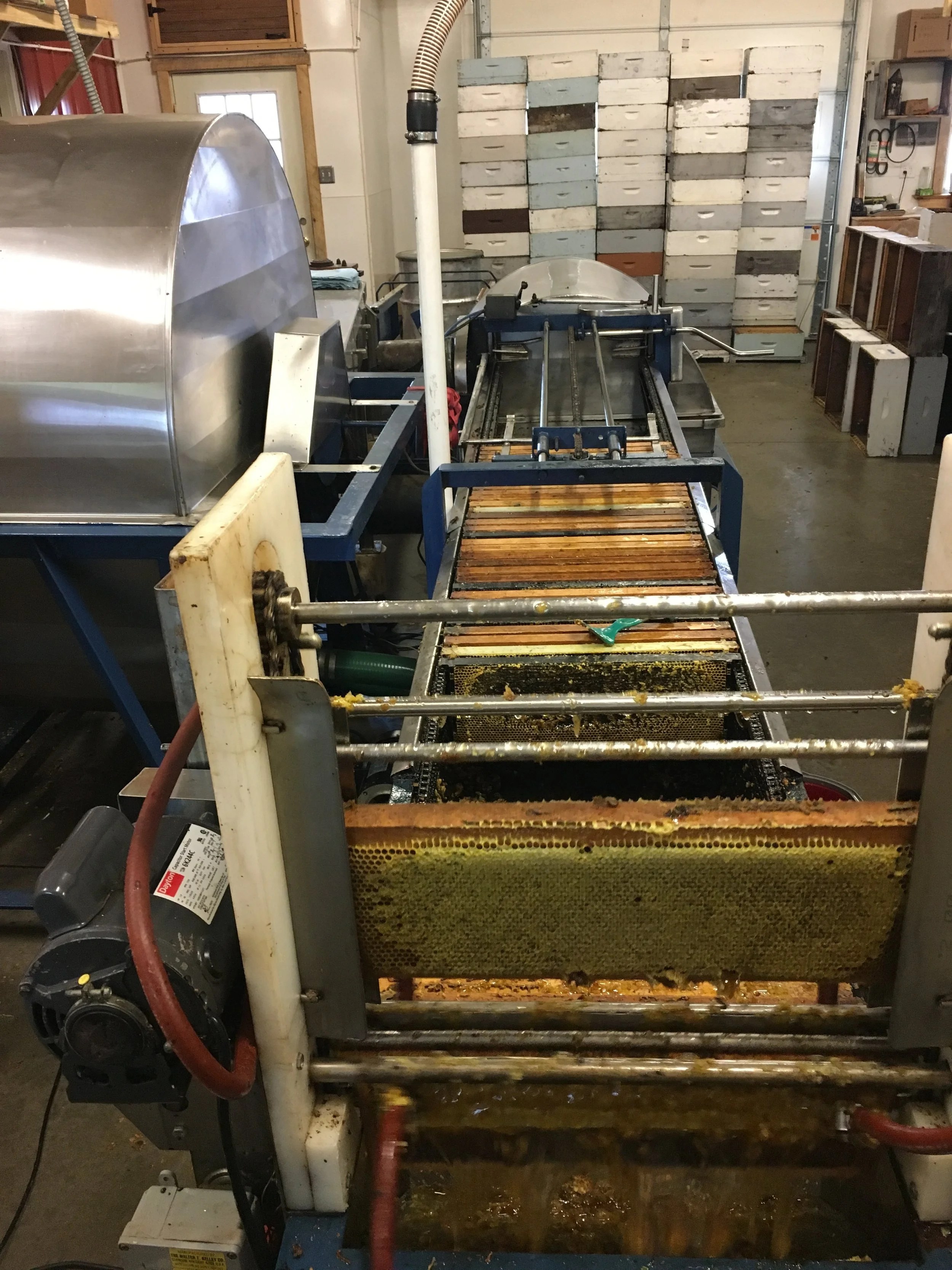 I happened to be walking by when the sump filled and the honey pump kicked on for the first time. What you see going up that tube is the very first of this year's fall harvest.