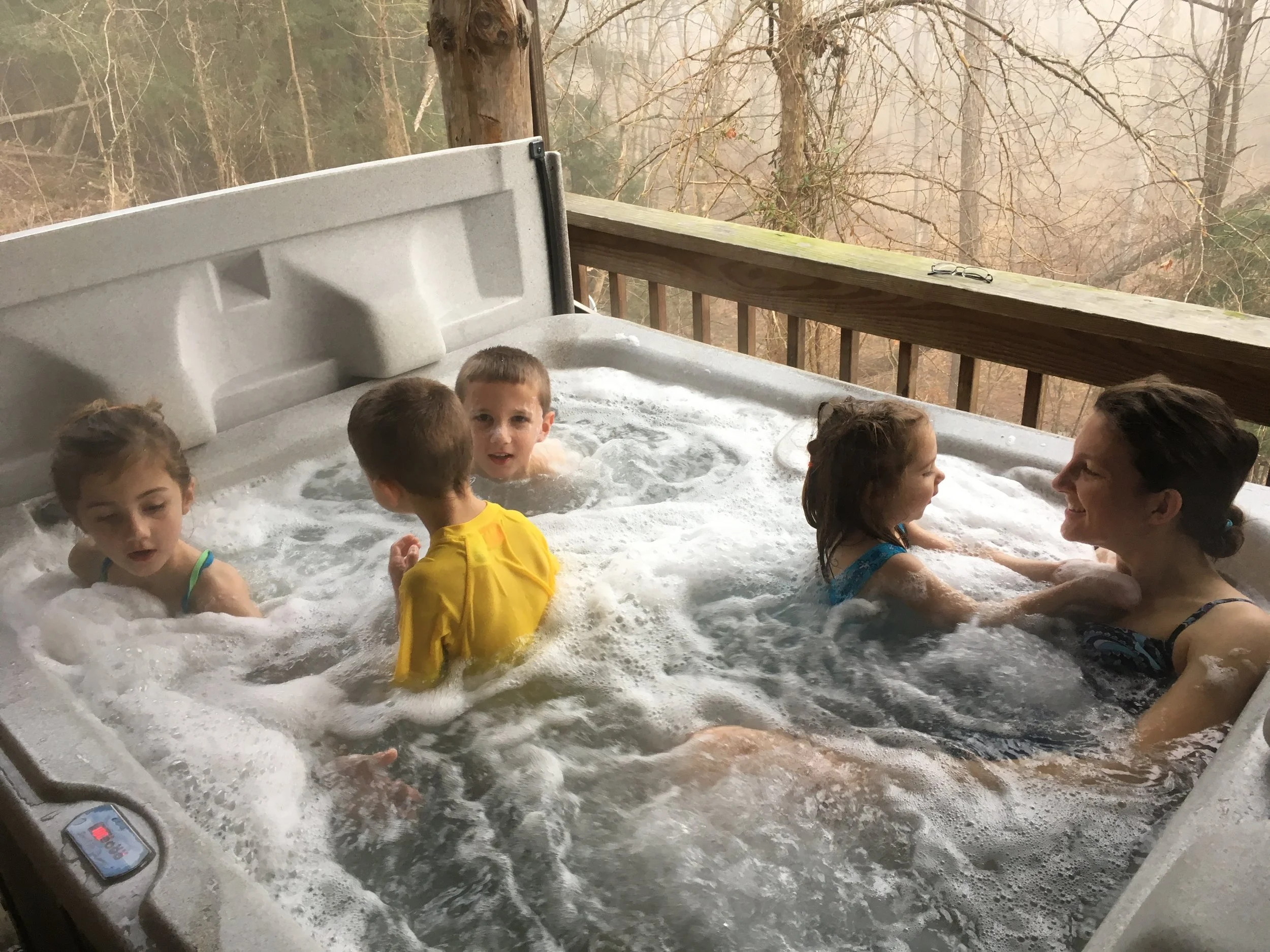 We weathered the last cold snap with a hot tub. It was a nice February getaway. A quiet, romantic outing to the Hocking Hills. Hehe. Yeah right.