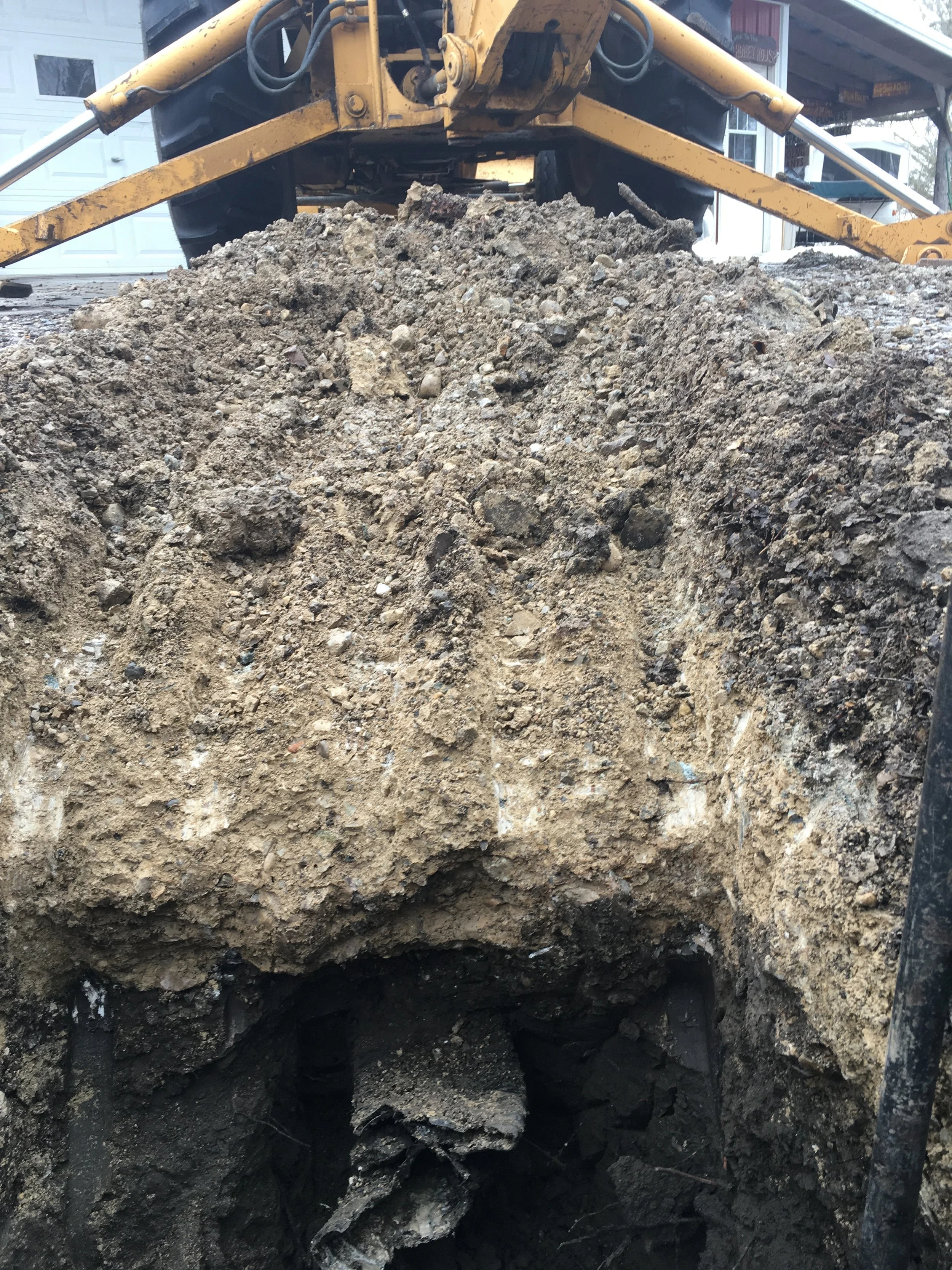 My awesome luck continued. About the second big scoop, I hit a water line.