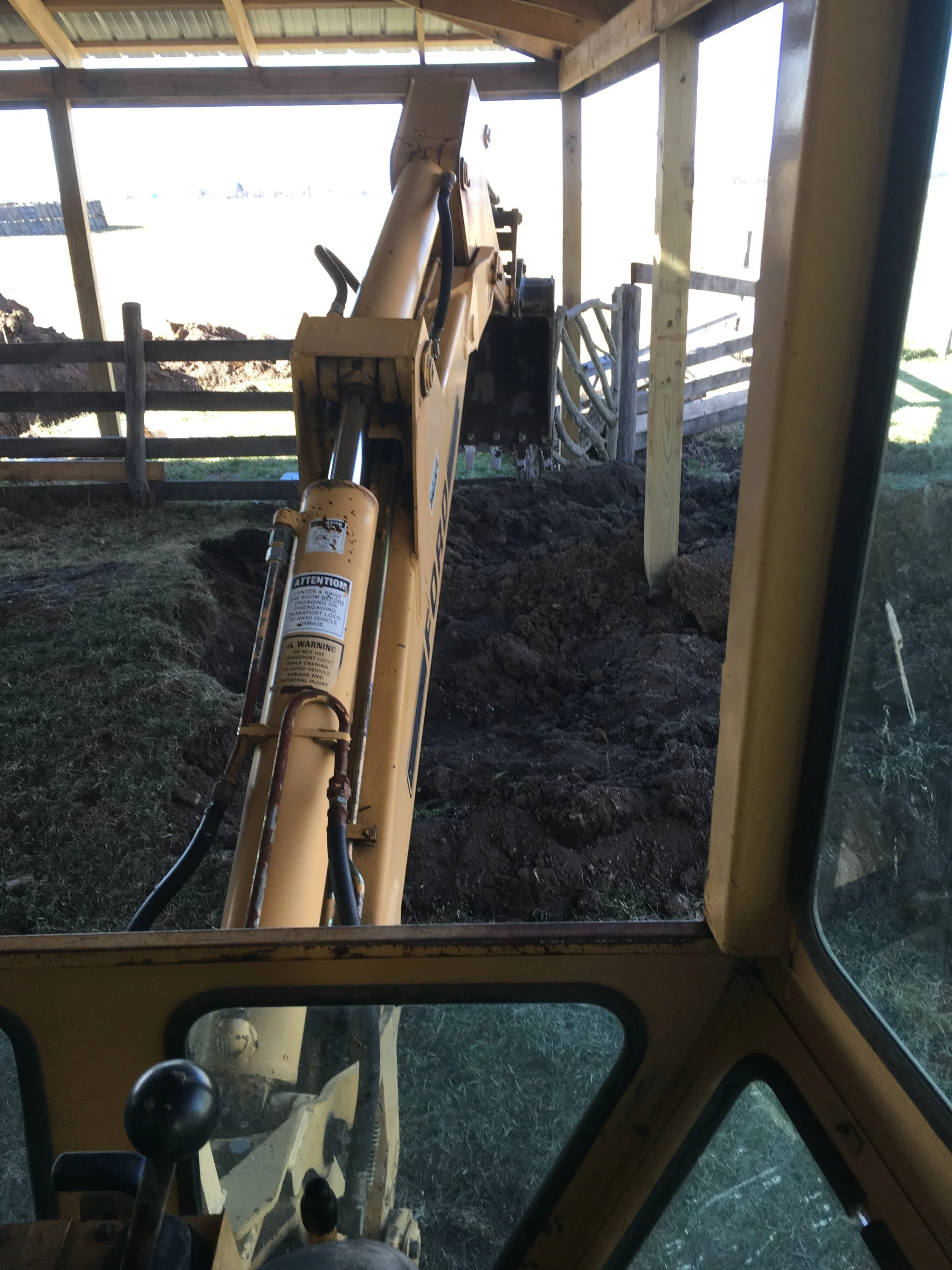 In every job, in every season. The unexpected. This week I spent many (unplanned for) hours on a backhoe. Luckily I have friends in high places and my brother Justin, the grain farmer, lent me this big shovel free of charge. I don't know how much we'd be shelling out if I had to rent... but I do know it would've been in the thousands.