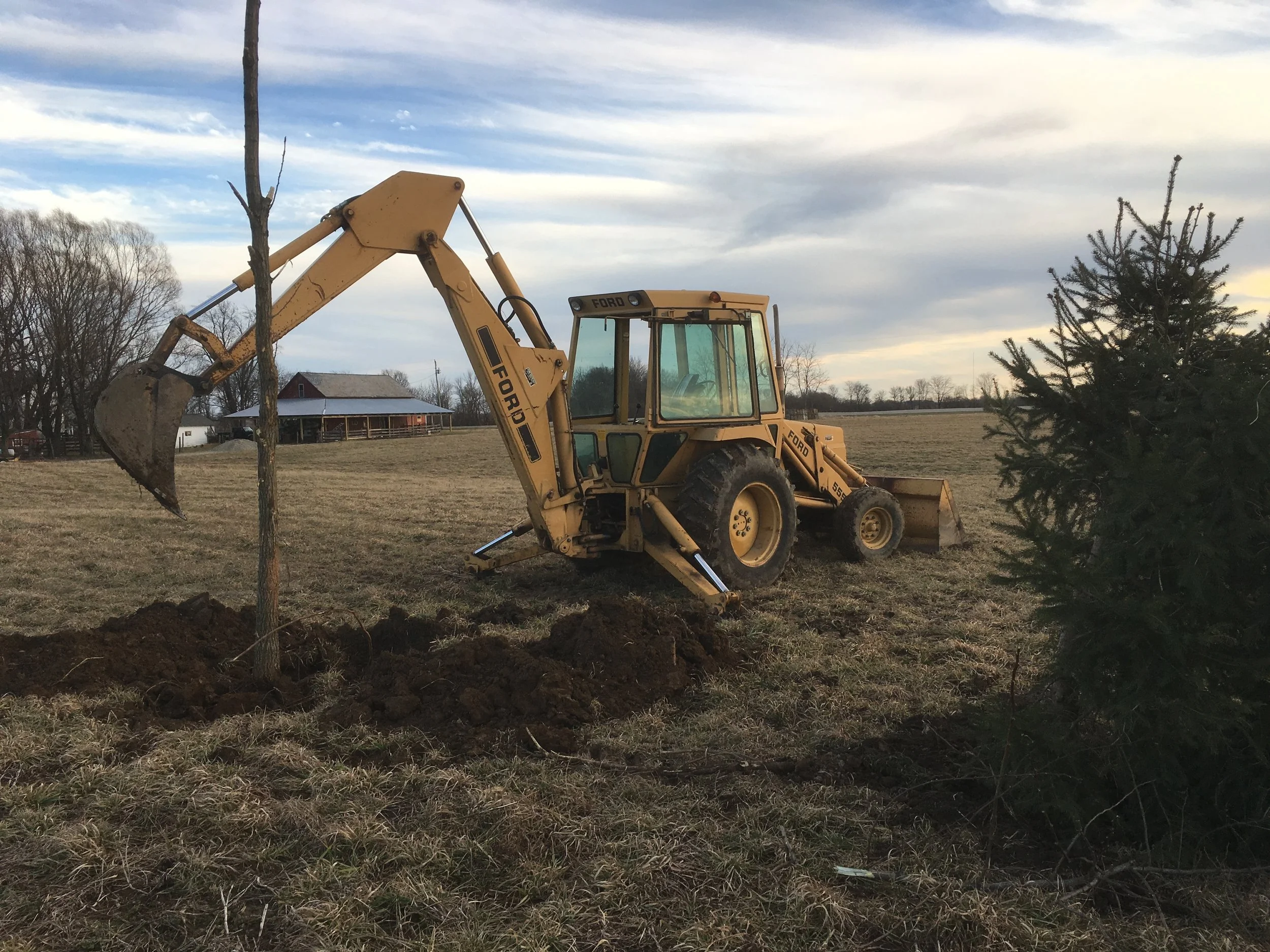 So Wednesday went by, water test done, old well buried, and the weather continued turning nicer. By Thursday we were actually looking at clear skies and sunshine. On top of it all, we still had the backhoe.