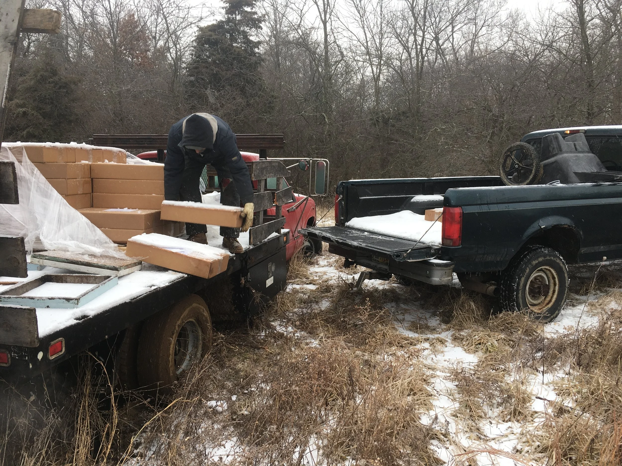 The next morning, instead of taking the time to pull the bee truck out (and possibly burying the other truck) we just transferred all the feed and hit the road.