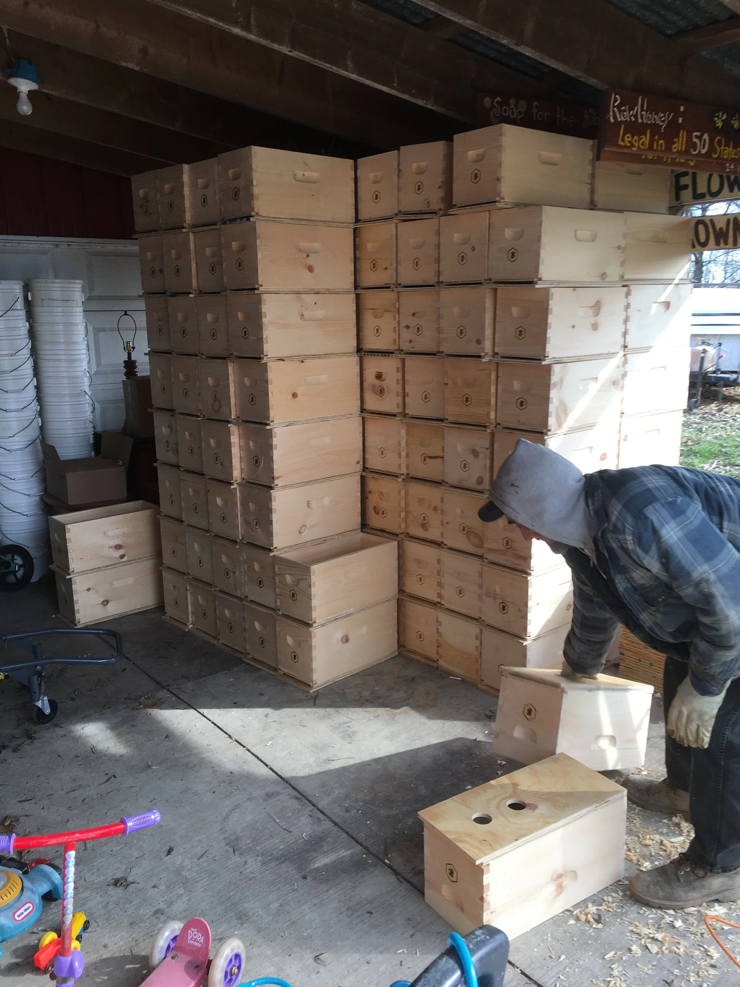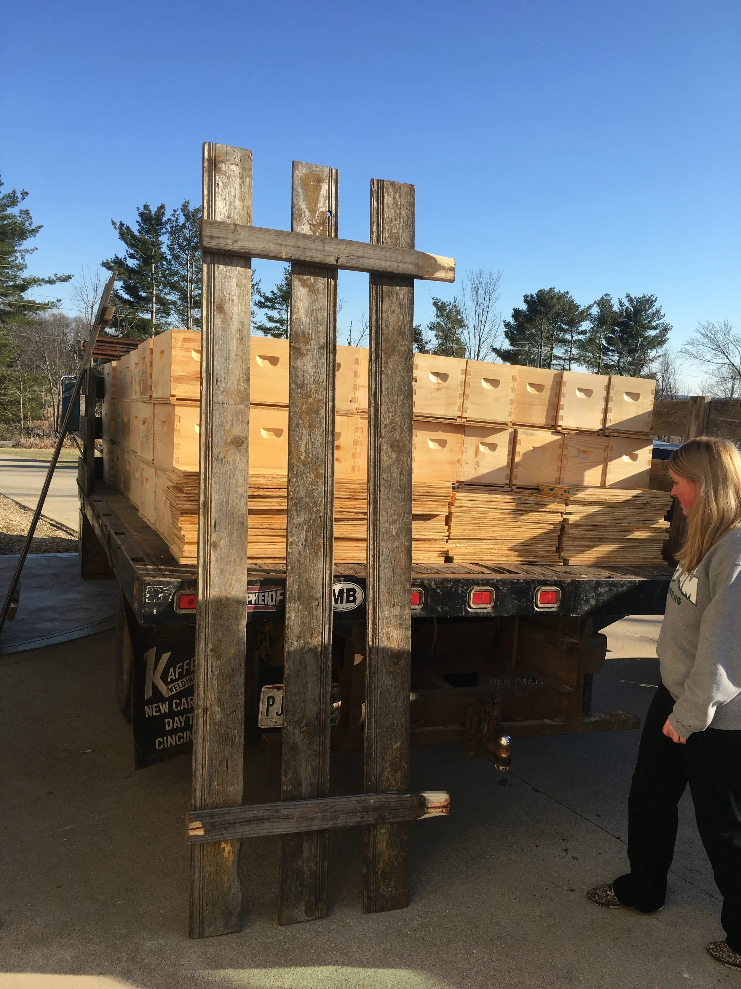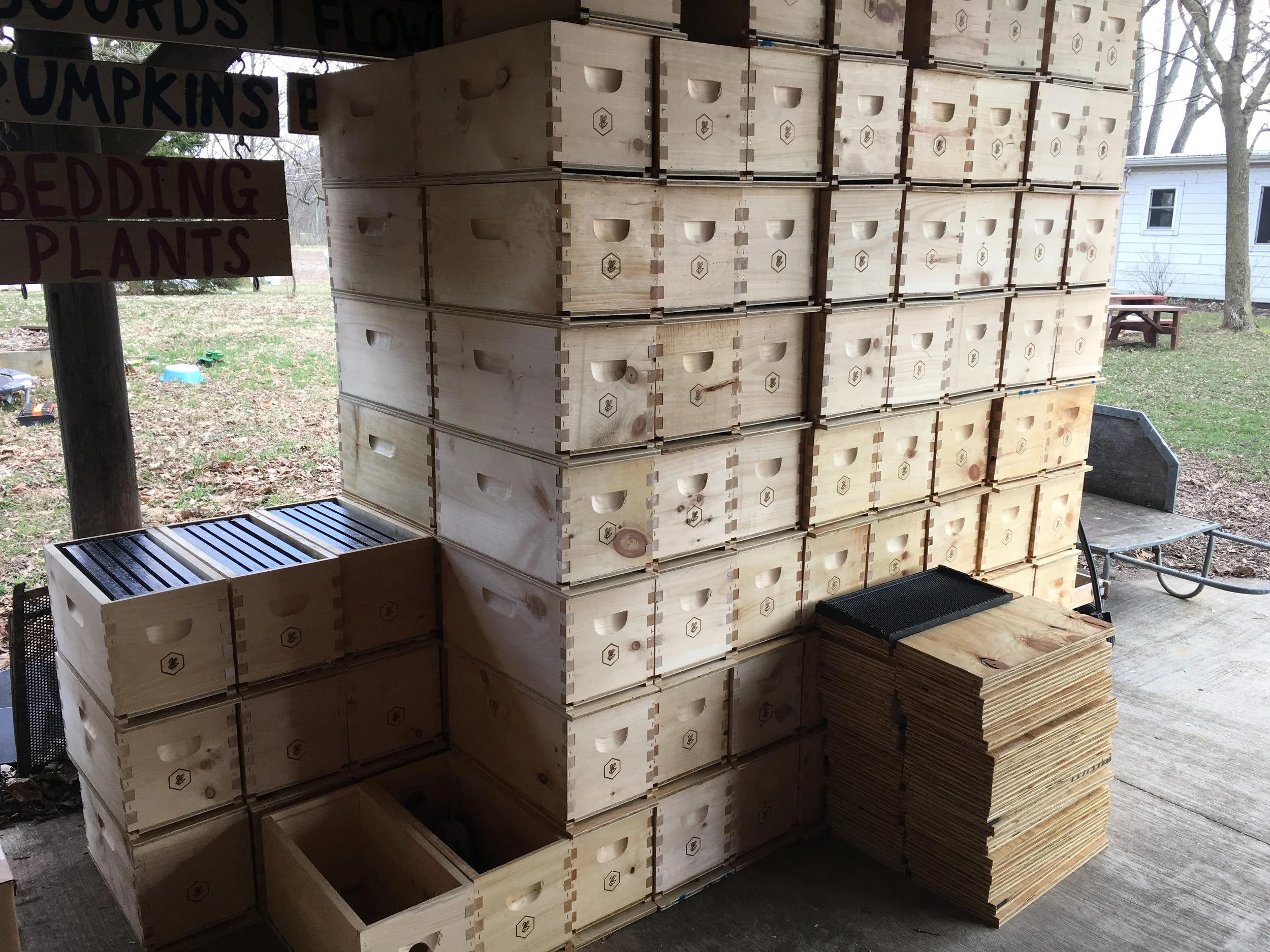 And we need nursery boxes for all these new births. This week I traveled to Mansfield to pick up the first batch of 300 custom nuc boxes, compliments of Ohio Bee Box Co.