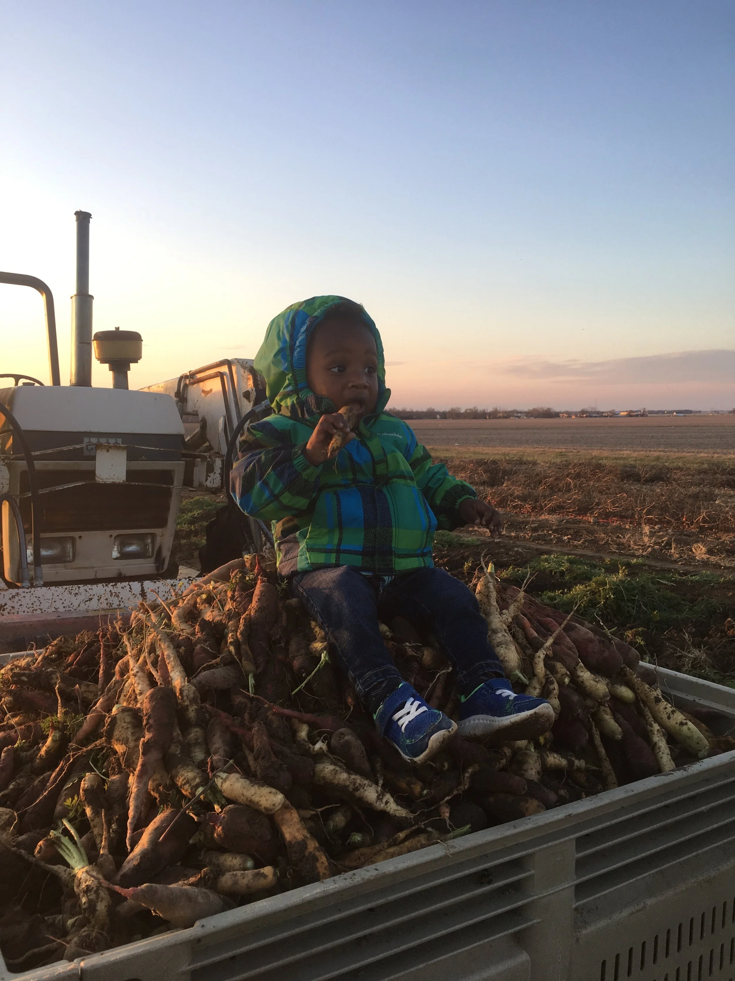 Was I right? I wasn’t exaggerating last week, was I? Just three days after having miss Louisa Mae, Becky was back in the fields. And she invited a bunch of friends to join her.